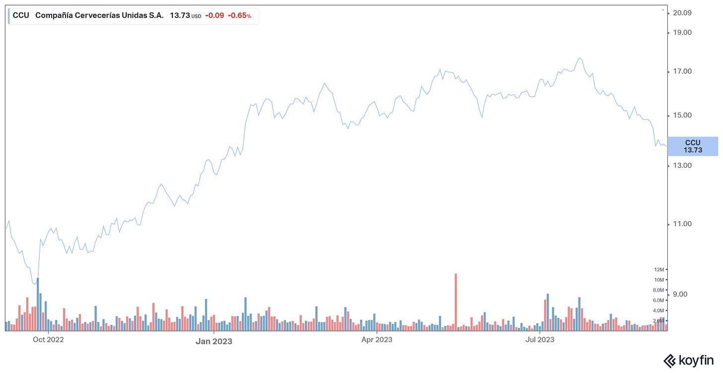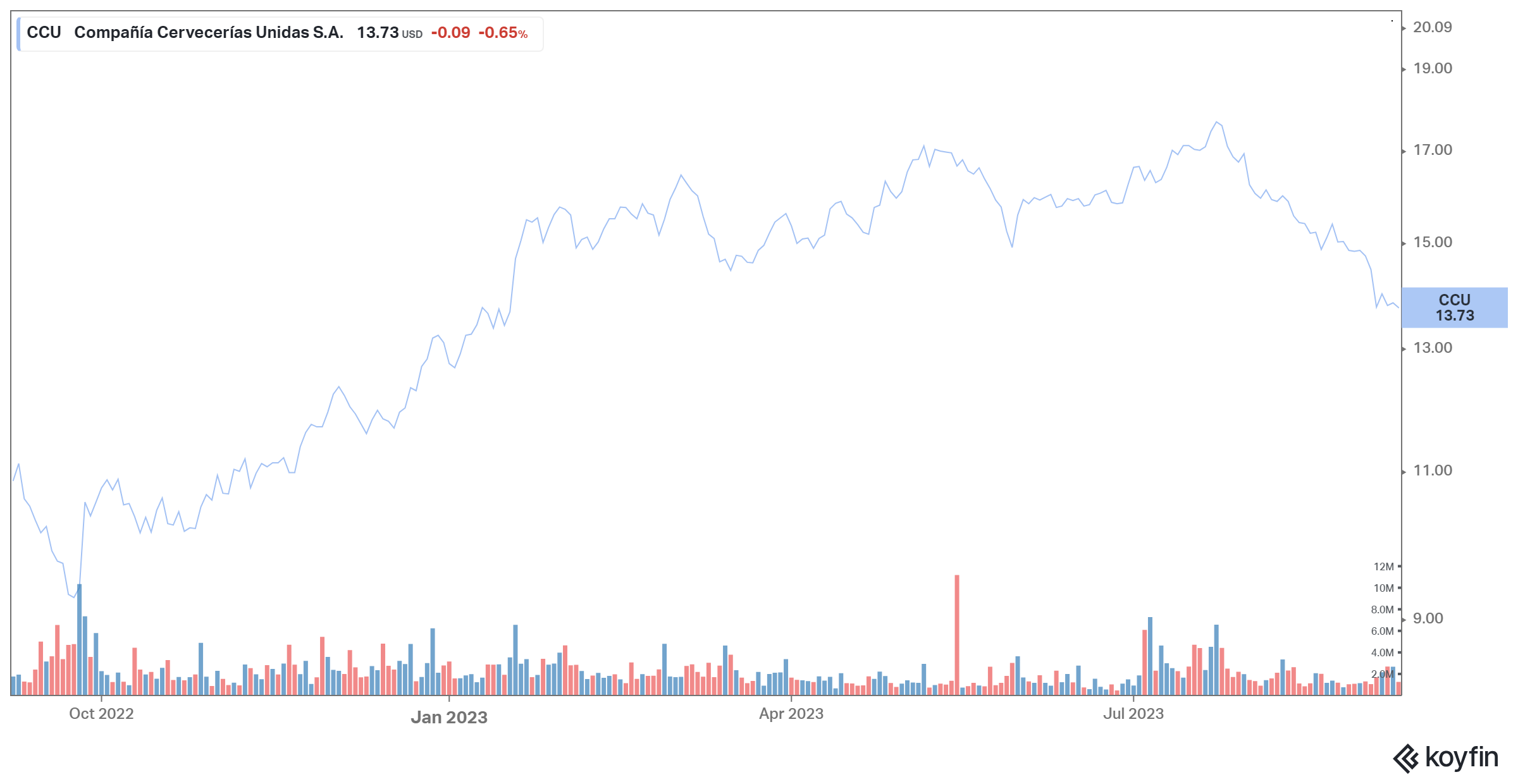 Compania Cervecerias Unidas (CCU), or United Brewery, is the giant Chilean beer brewer. The stock remained under pressure for most of 2022 but did extremely well for H1 2023.