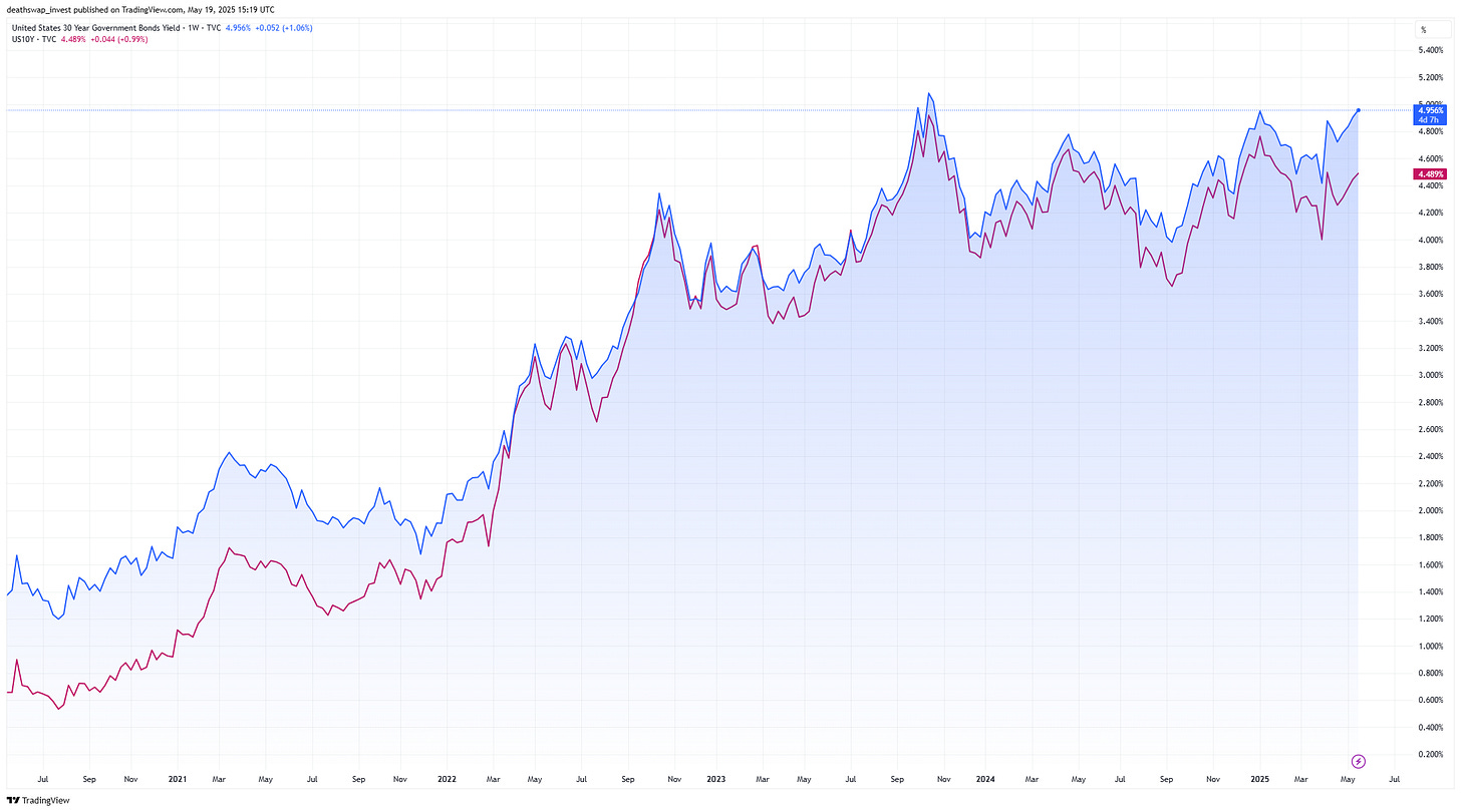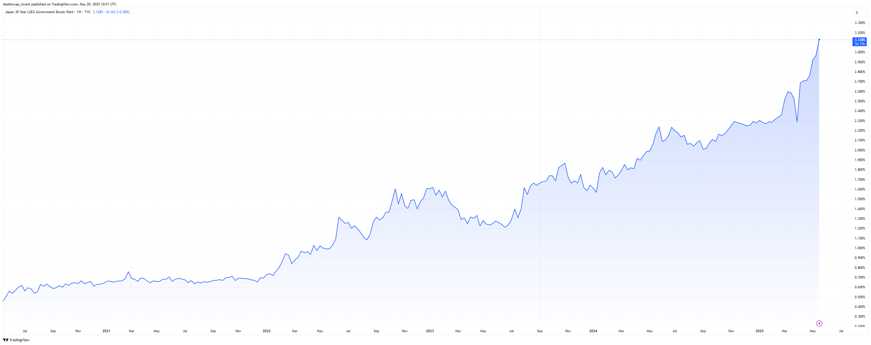 US long-term bond yields keep grinding higher. US 30-year Treasury yields briefly made a new high this year, and it’s not just the US either. While European yields have gone up a bit, the prize goes to Japan which is seeing yields soar.