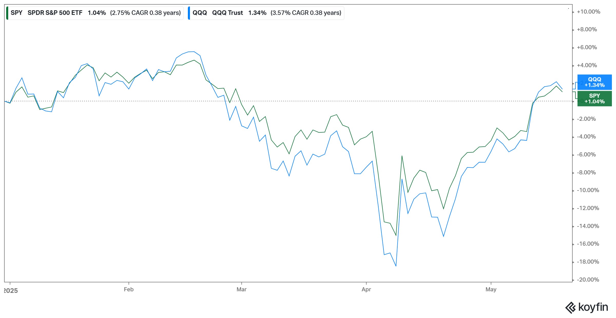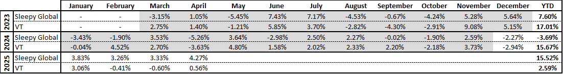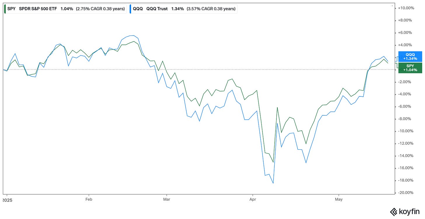 April and the beginning of May was one of the wildest periods in markets in a very long time (possibly ever). Equities led by the the US tanked after “Liberation Day” and then staged a stunning rebound.